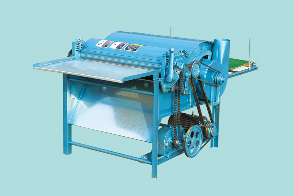 本機(jī)適用于舊棉胎、短絨、舊羊毛衫、化纖等開(kāi)松、除塵、成卷。(一般開(kāi)松2-3遍才能達(dá)到疏松效果)